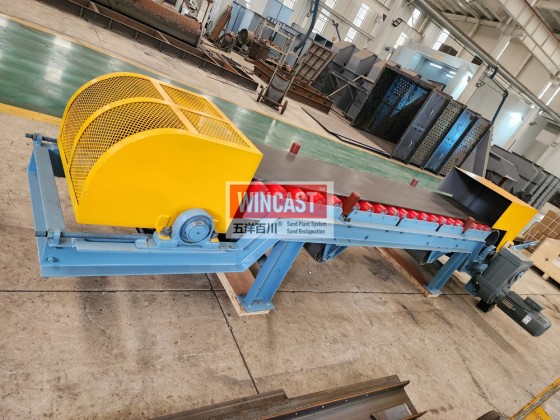 该带式给料机主要用于铸造车间新砂、型砂和经过处理的旧砂等物料的给料。对于块度大,夹有铁质杂块以及琢磨性高的物料不宜使用。